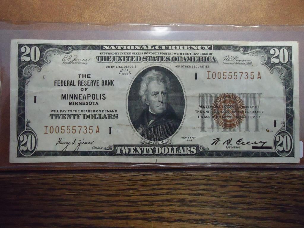 1929 $20 NATIONAL CURRENCY MINNEAPOLIS BROWN SEAL