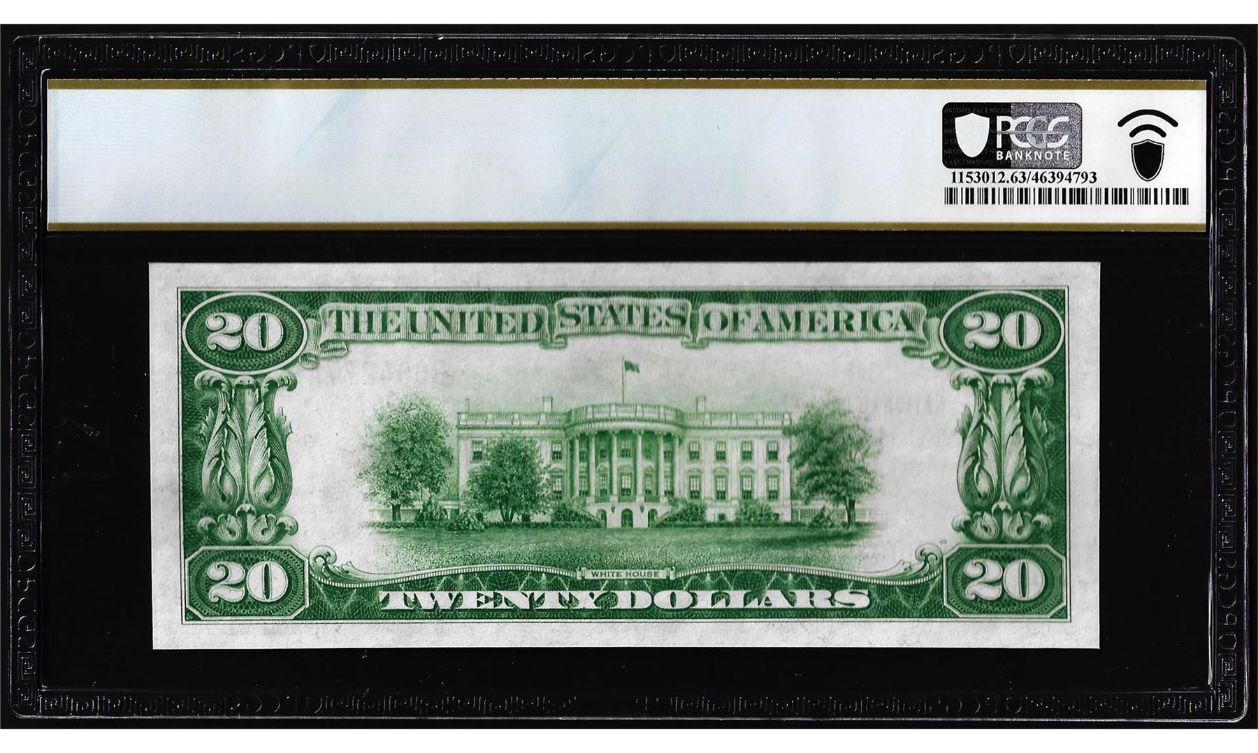 1929 $20 NB of Washington, D.C. Ch# 3425 National Note PCGS Choice Uncirculated 63