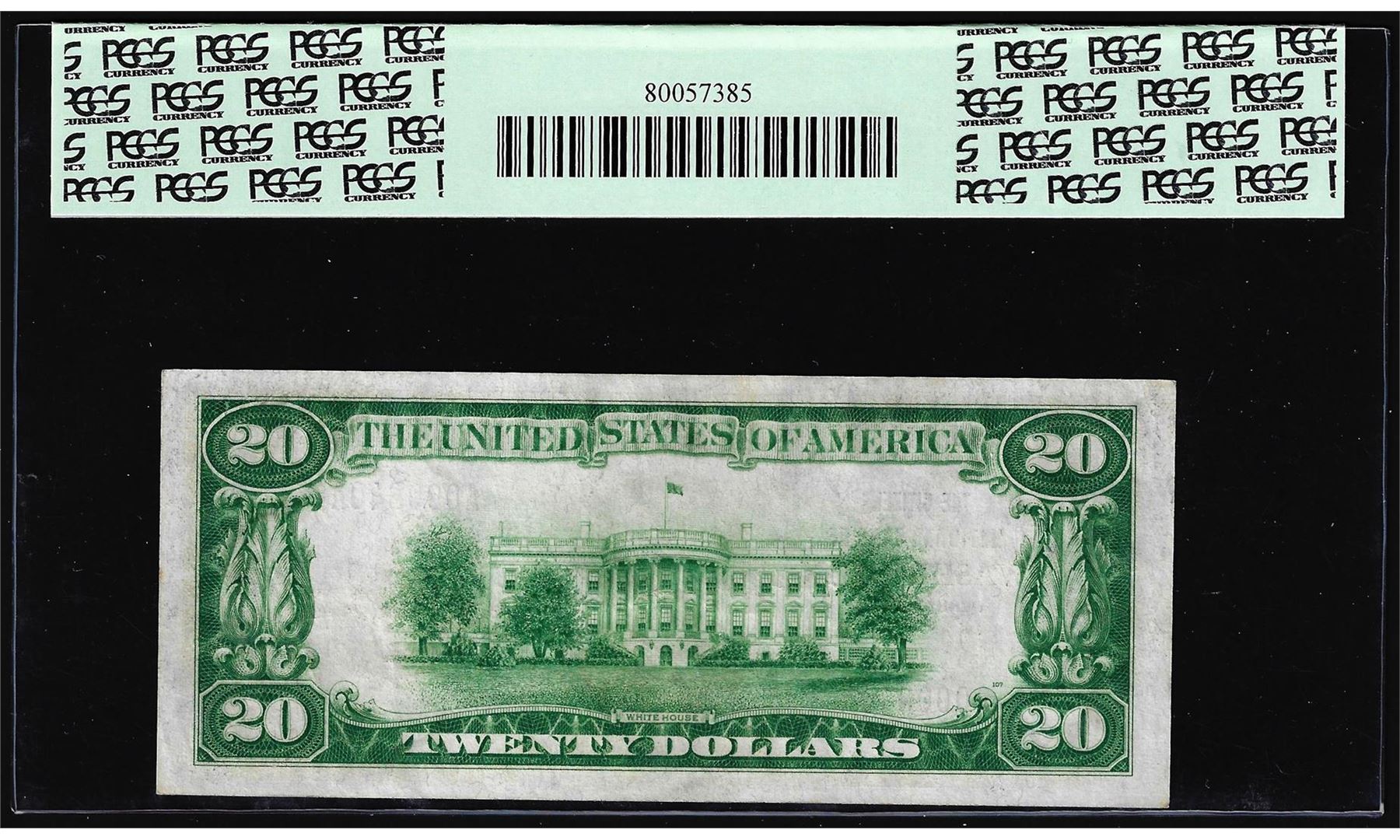 One 1929 $20 NB of Washington, PA CH# 3383 National Currency Note PCGS About New 53PPQ. PCGS Graded.