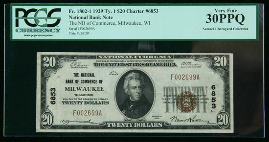 1929, $20 National Bank Note. The NB of Commerce, Milwaukee, WI. PCGS Very Fine 30PPQ. . Fr-1802-1. A lovely, problem-free small size example.