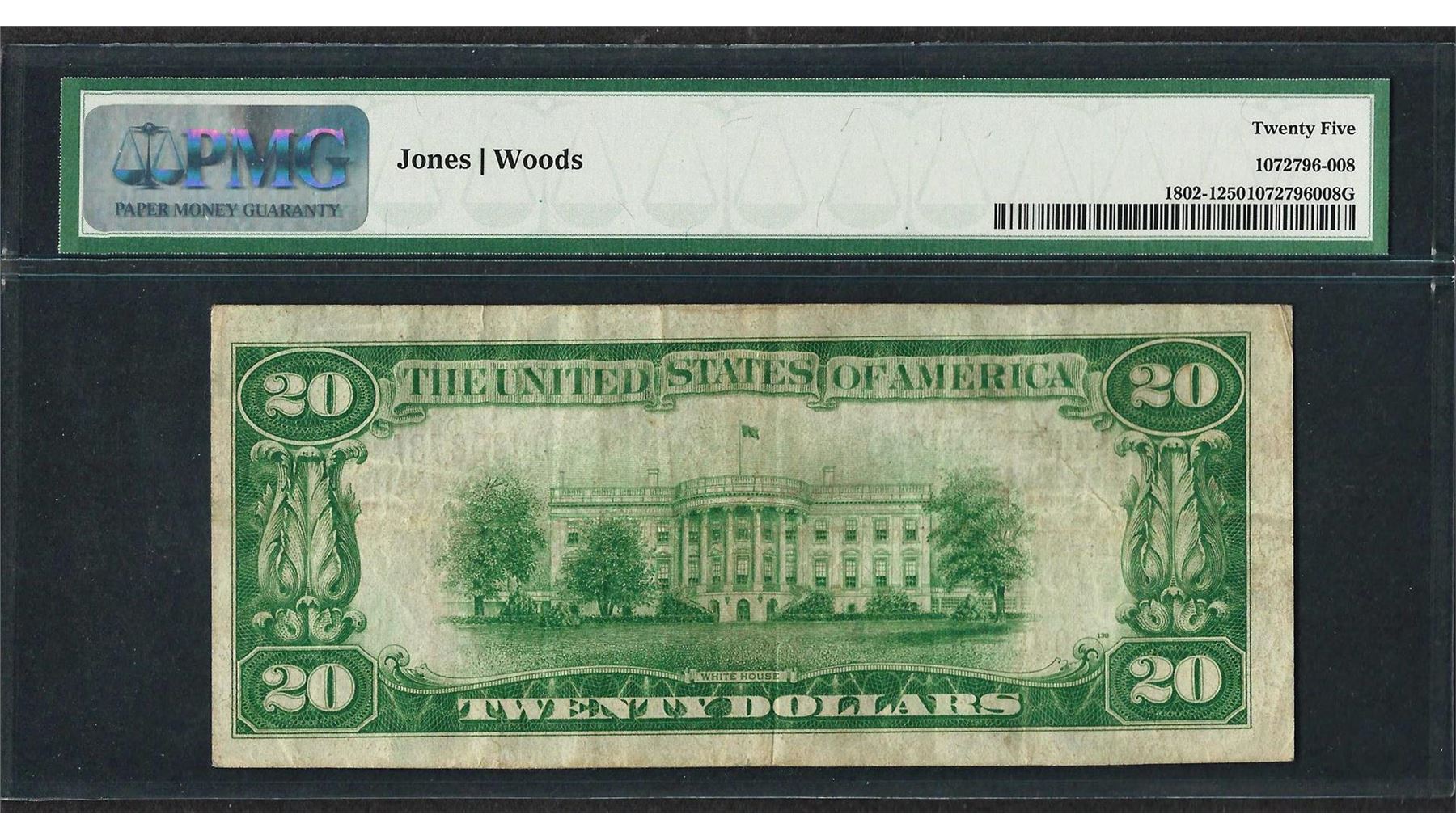 One 1929 $20 National Currency Note Montgomery, Pennsylvania CH# 1148 PMG Very Fine 25.