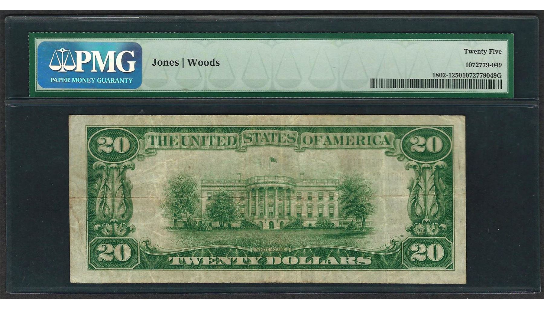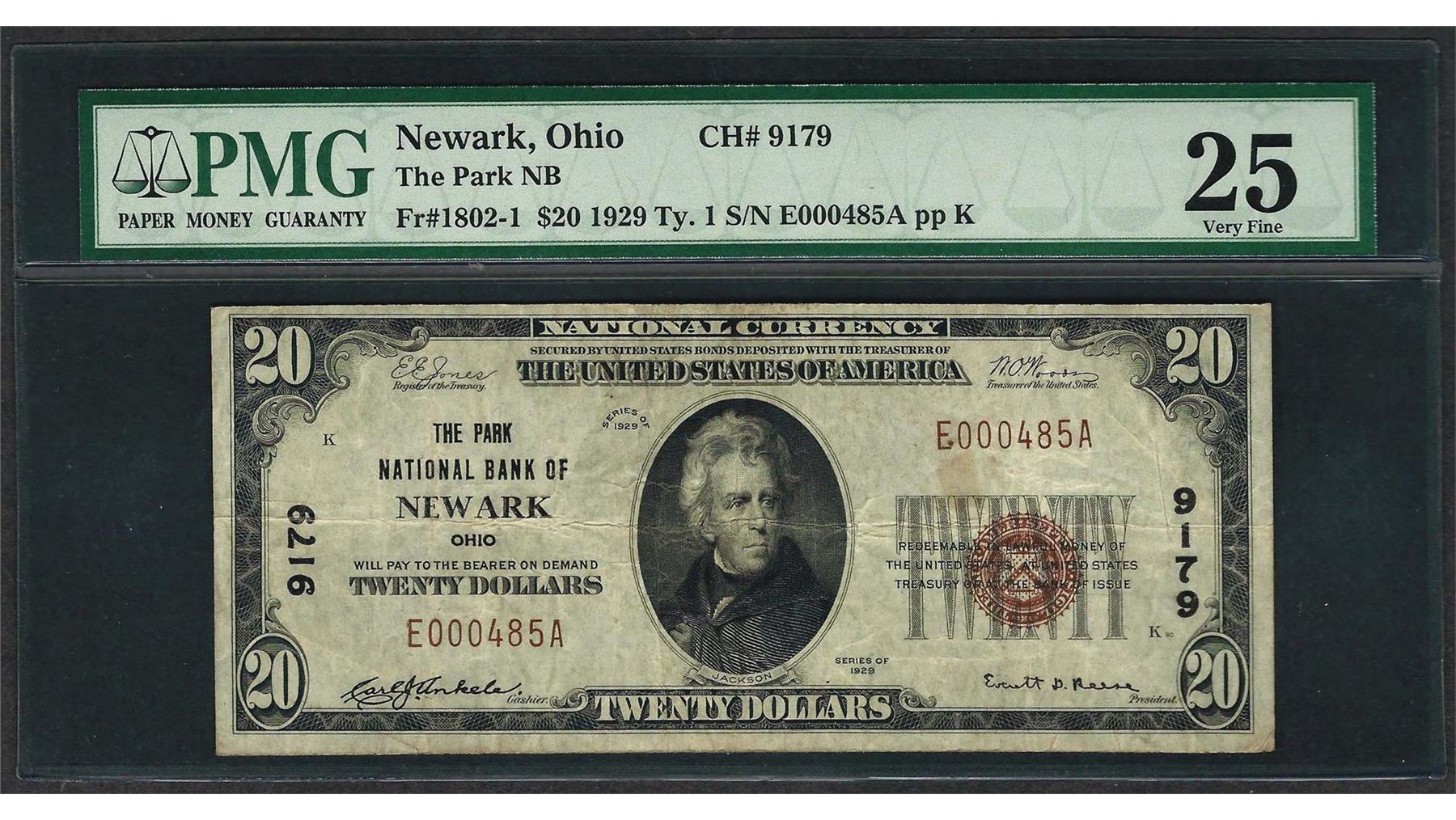 One 1929 $20 National Currency Note Newark, Ohio CH# 9179 PMG Very Fine 25. PMG Certified.