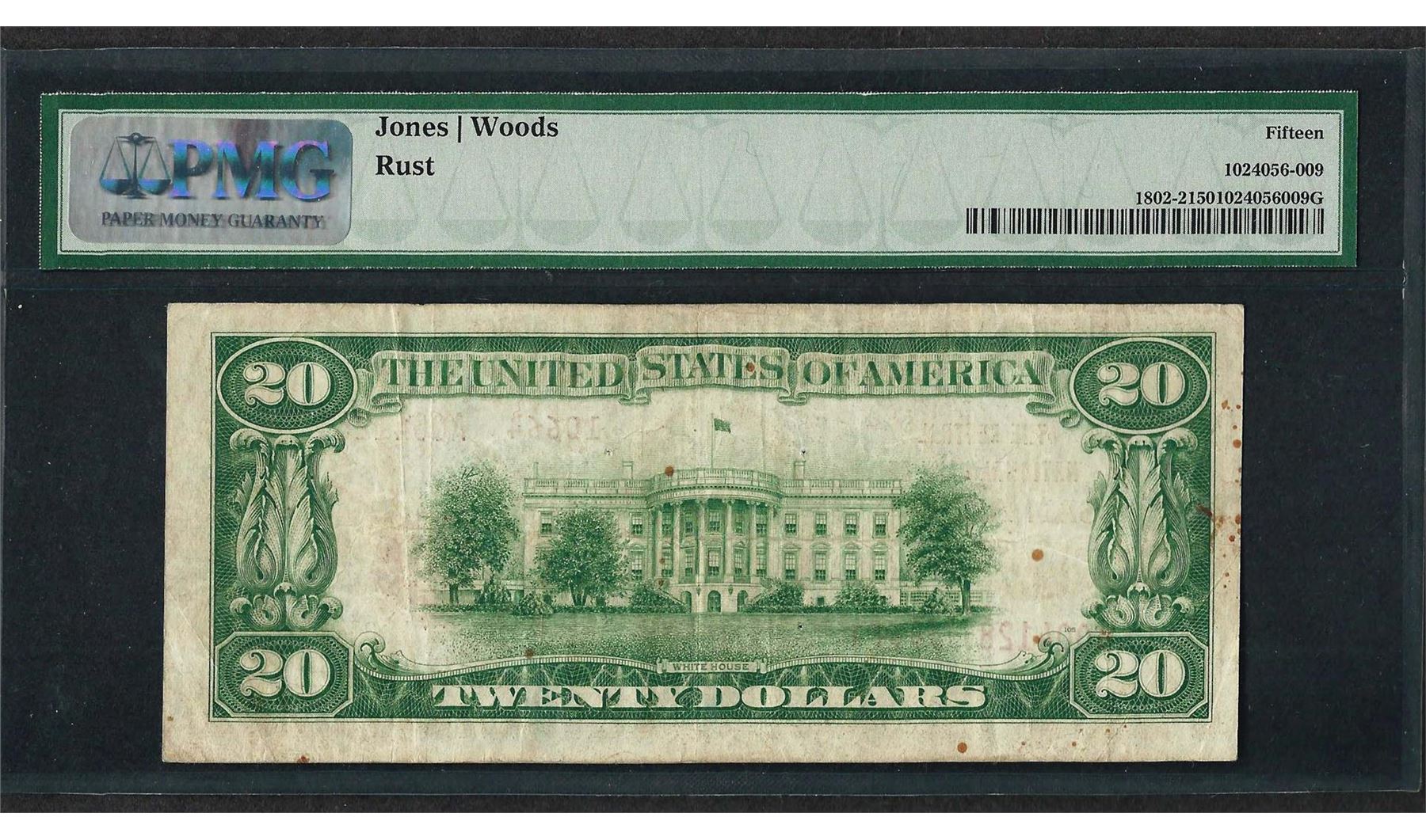 One 1929 $20 National Currency Note San Angelo, TX CH# 10664 PMG Choice Fine 15. PMG Certified.