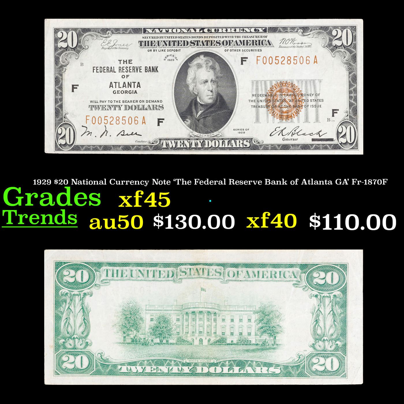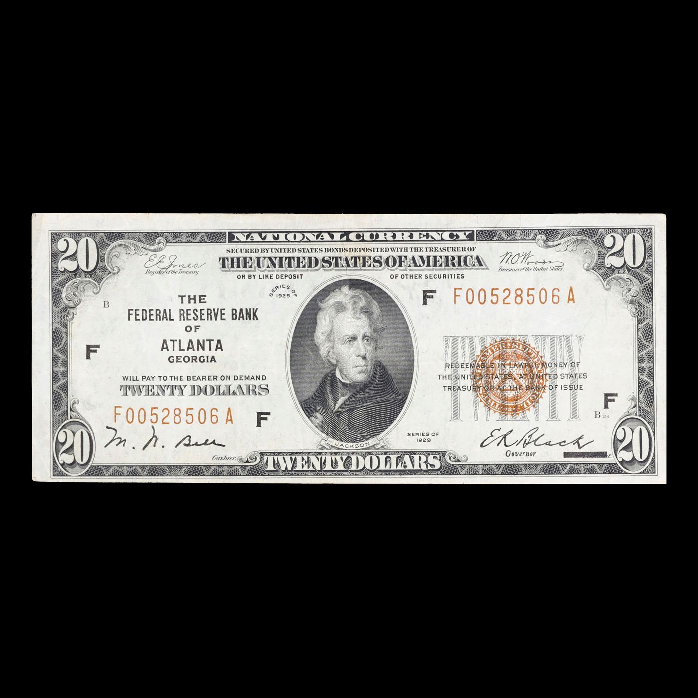 1929 $20 National Currency Note 'The Federal Reserve Bank of Atlanta GA' Fr-1870F Grades xf+