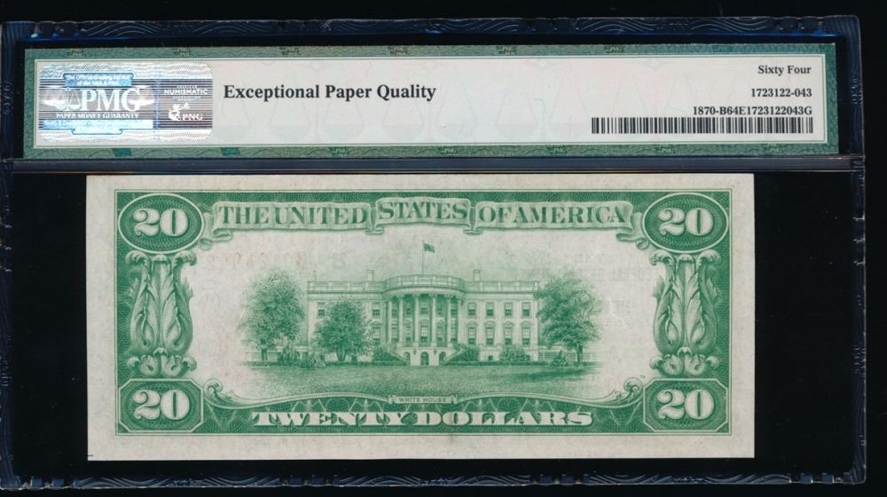 One 1929 $20 New York Federal Reserve Bank Note PMG 64EPQ.