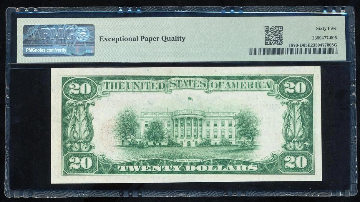 One 1929 $20 Serial 7 Cleveland FRBN PMG 65EPQ.