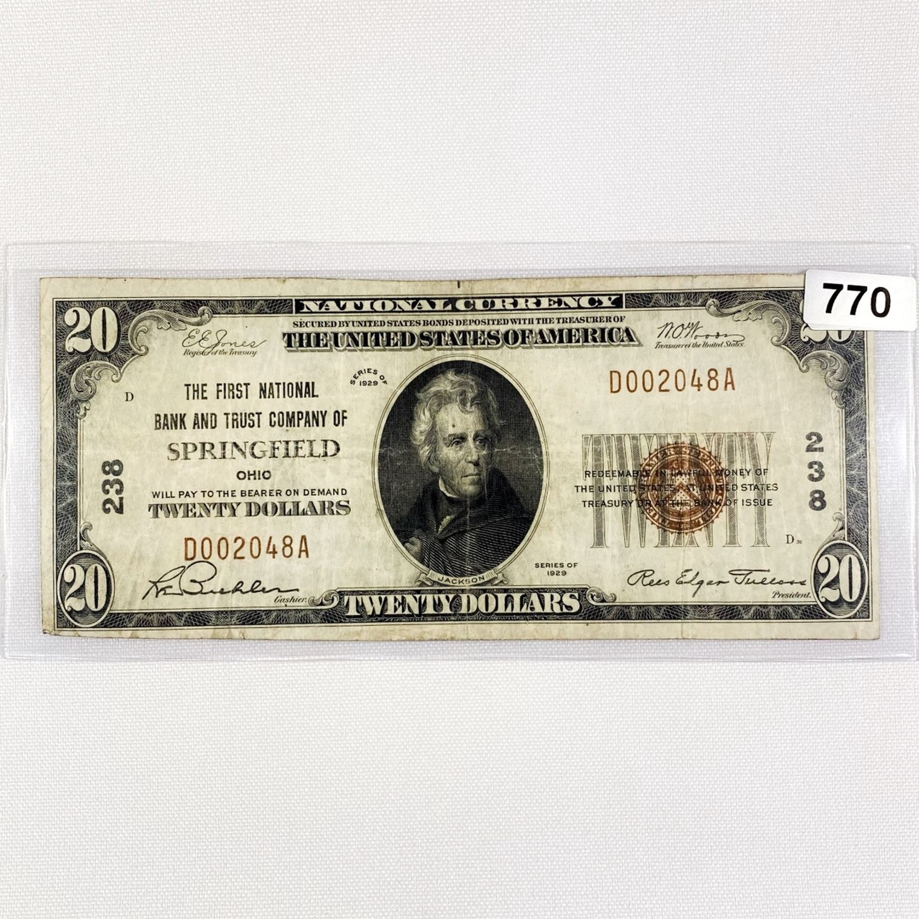 1929 $20 Springfield Bank, OH National Bank Note