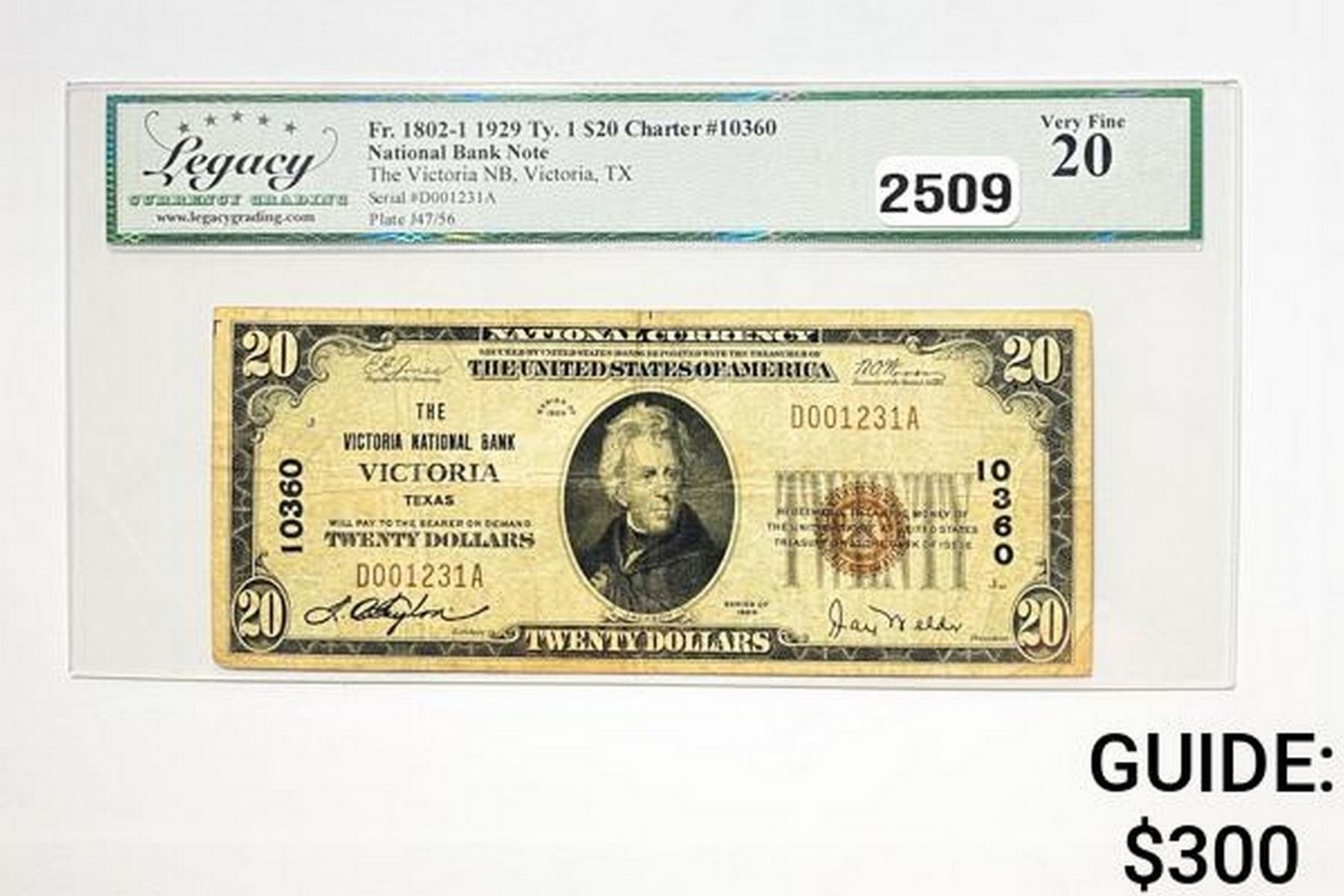 1929 $20 U.S. Nat. Bank Note-Victoria,TX LCG VF 20