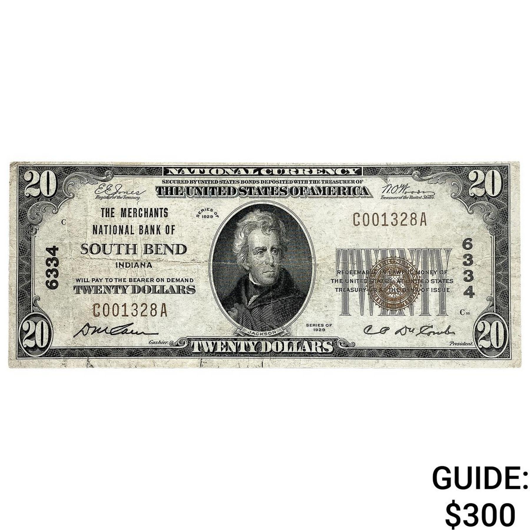 1929 $20 U.S. Note-Nat. Bank of South Bend Indiana