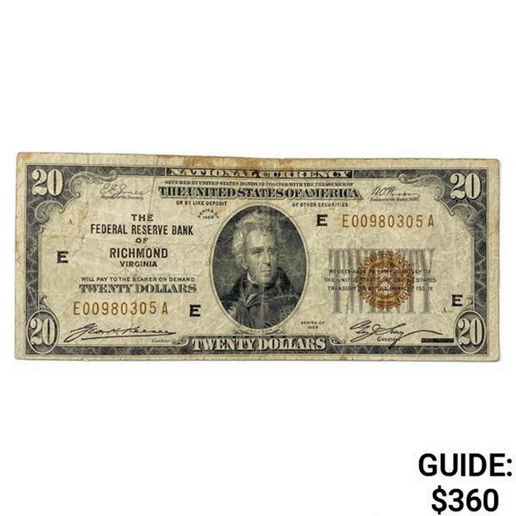 1929 $20 US Bank of Richmond, VA Fed Res Note