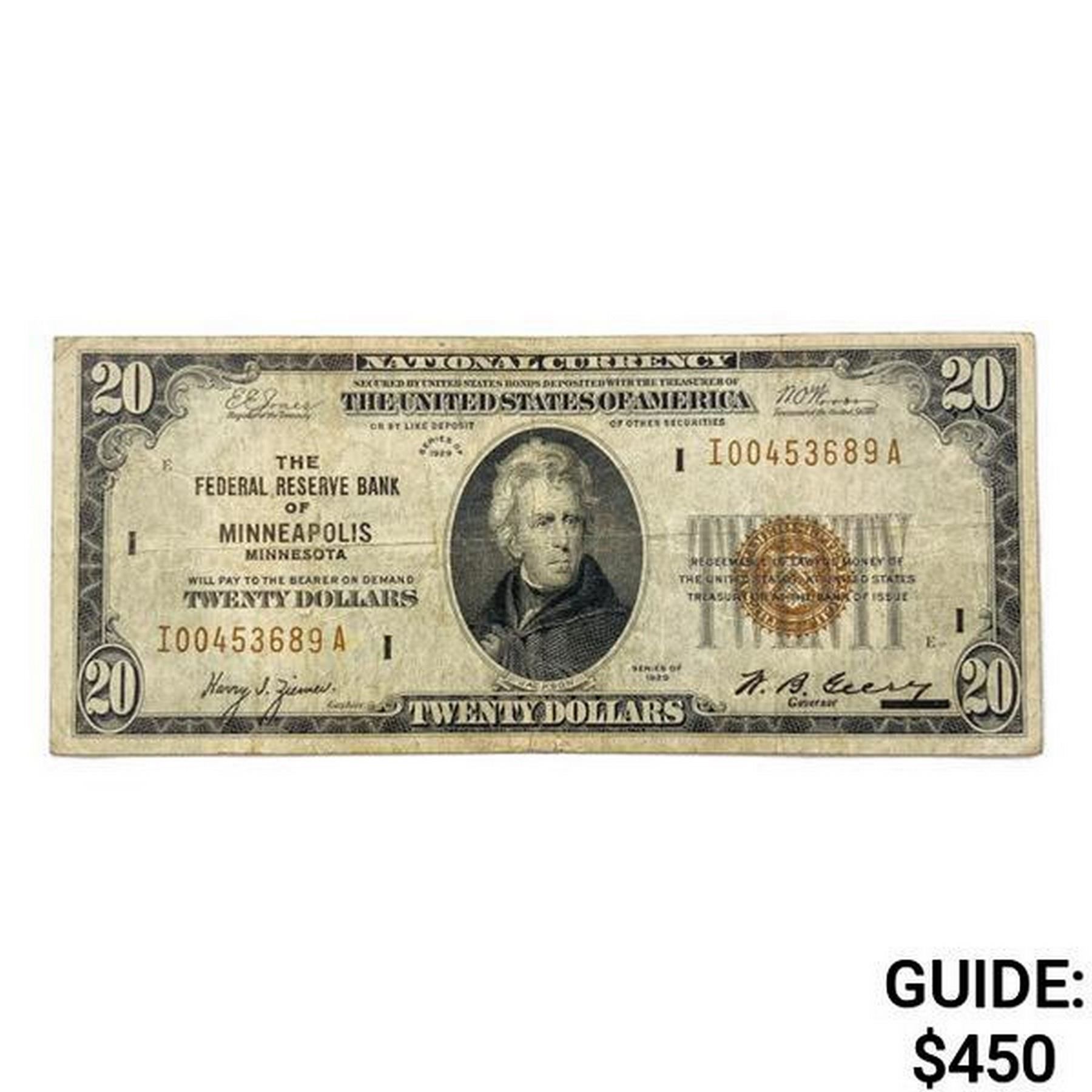 1929 $20 US MinneapolIs Bank, MO Fed Res Note
