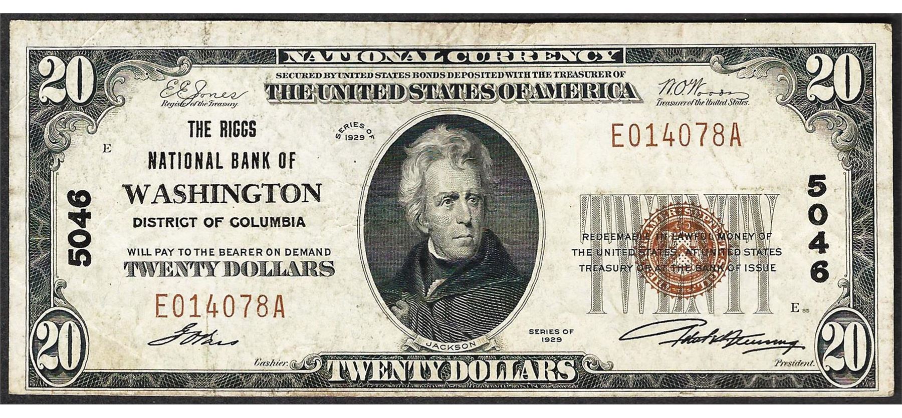 One 1929 $20 Washington District of Columbia National Currency Note CH# 5046.