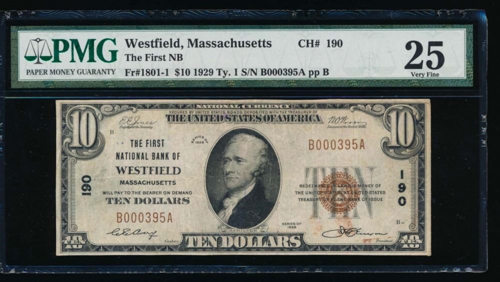 One 1929 $20 Westfield National Bank Note PMG 25.