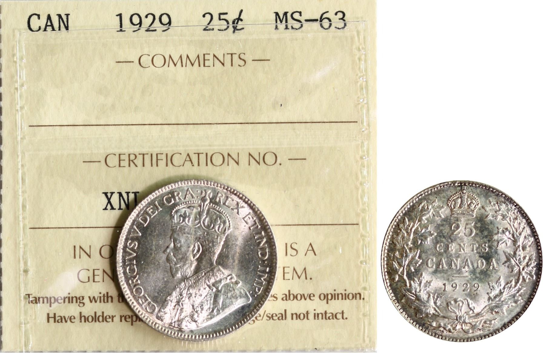 1929 25¢ ICCS Choice Mint State-63 Fully brilliant and lustrous.