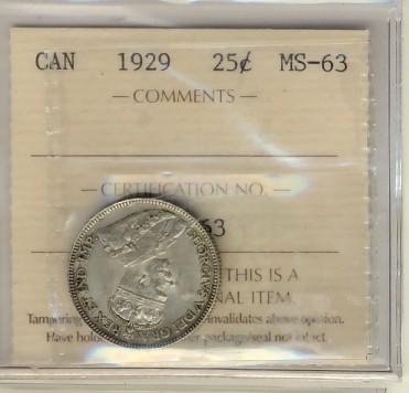 1929 25¢ ICCS MS63.