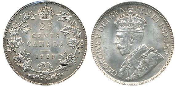 1929 25¢ ICCS MS65. Strong lustre and clean fields.
