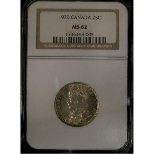 1929 25¢ NGC MS-62, touch of gold otherwise brilliant.