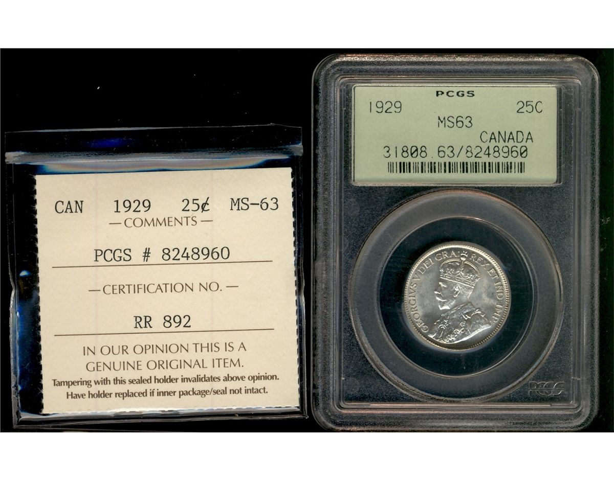 1929 25¢ PCGS/ICCS MS63. Strong lustre and gem fields.