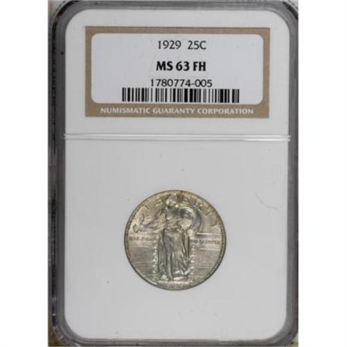 <B>1929 25C MS63 Full Head NGC.</B></I> NGC Census: (148/432). PCGS Population (242/742). Mintage: 11,140,000. Numismedia Wsl. Price for NGC/PCGS coin in MS63: $300. (#5773)<BR><BR><B>Coin Engraver:</B> Hermon A. MacNeil<BR><BR><b>Shipping:</b> Coins & Currency (<a target="_blank" href="http://www.heritageauctions.com/common/shipping.php">view shipping information</a>\)