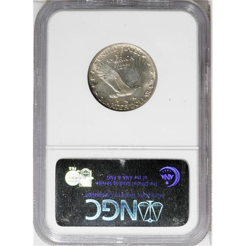 <B>1929<25C> MS65 Full Head NGC.</B></I> A boldly struck Type Three Gem that sports attractive luster. Delicate champagne and blue patina graces the surfaces, and aside from a few small marks to the right of the eagle, the fields seem trouble-free.