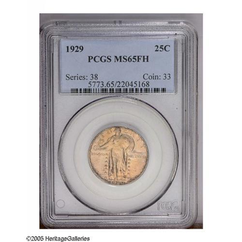 <B>1929<25C> MS65 Full Head PCGS.</B></I> Swirling luster and gold-tan patina grace well preserved surfaces. The design elements are sharply struck, though a couple of the lower rivets do not show. PCGS has certified just 71 pieces higher (11/05).