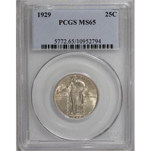 <B>1929 25C MS65 PCGS.</B></I> PCGS Population (94/25). NGC Census: (67/17). Mintage: 11,140,000. Numismedia Wsl. Price for NGC/PCGS coin in MS65: $440. (#5772)<BR><BR><B>Coin Engraver:</B> Hermon A. MacNeil<BR><BR><b>Shipping:</b> Coins & Currency (<a target="_blank" href="http://www.heritageauctions.com/common/shipping.php">view shipping information</a>\)