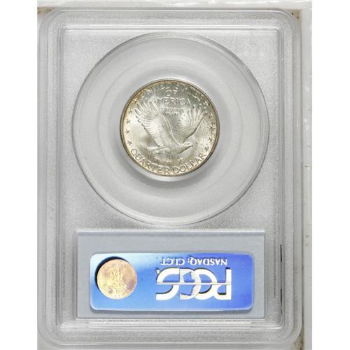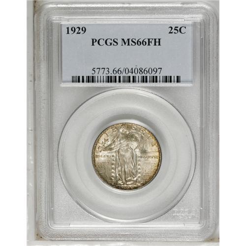 <B>1929<25C> MS66 Full Head PCGS.</B></I> Lustrous surfaces exhibit golden peripheral toning, which is slightly deeper on the obverse, and the design elements are sharply brought up. The surfaces are basically immaculate, except for a small flaw at the upper part of the first T in STATES and the adjacent rim, which may be mint-made. Population: 79 in 66, 5 finer (8/06).