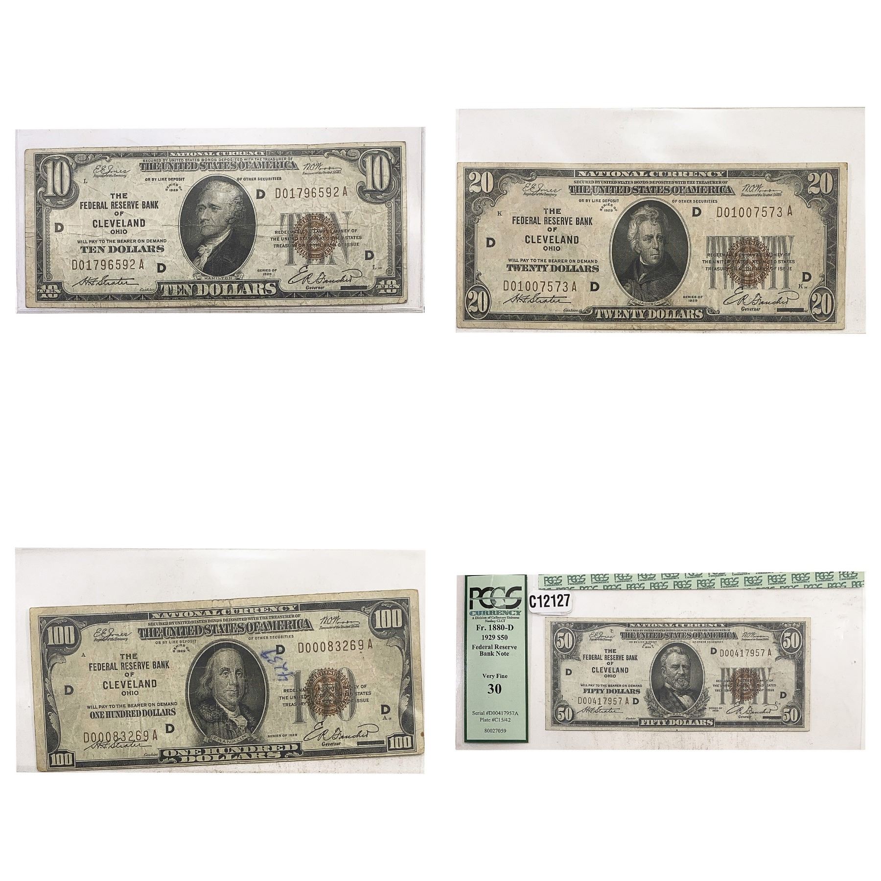 1929 [4] $10, $20, $50 and $100 Federal Reserve Note
