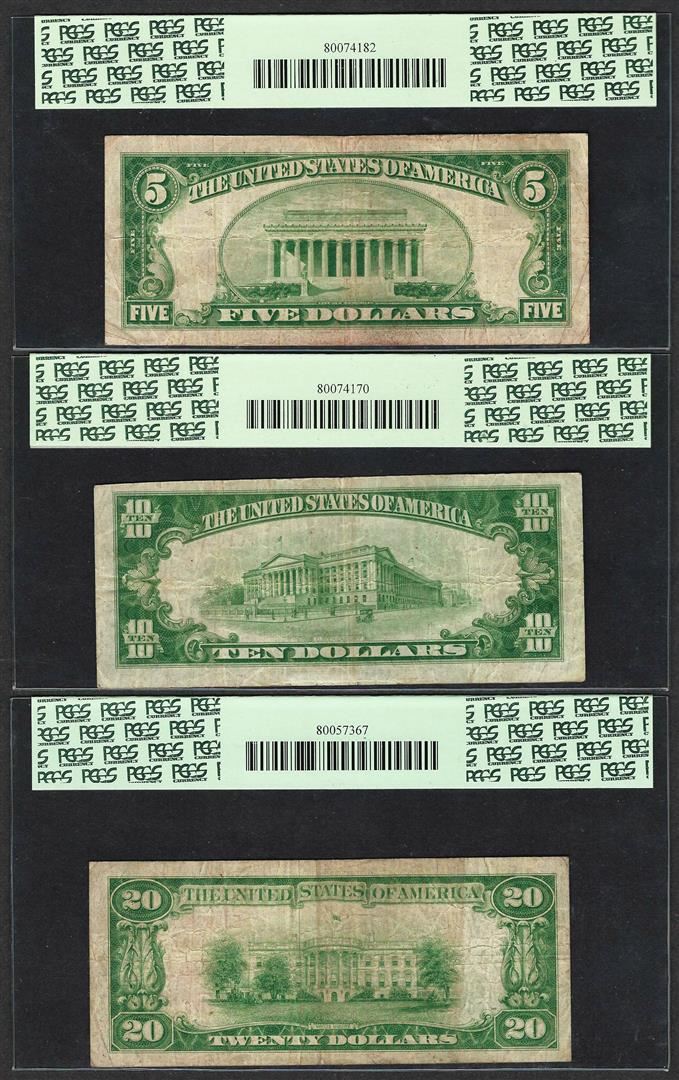One 1929 $5/10/20 Citizens NB Washington, PA CH# 3383 National Currency Notes PCGS VF20. PCGS Graded.
