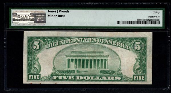One 1929 $5 Bethlehem National Bank Note PMG 30.