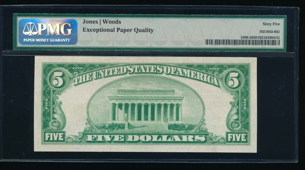 One 1929 $5 Burlington National Bank Note PMG 65EPQ.