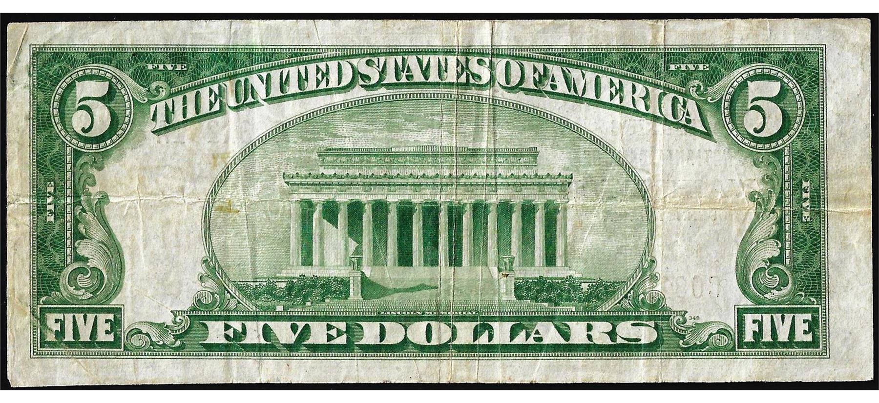 One 1929 $5 Citizens NB of Washington, Pennsylvania CH# 3383 National Currency Note.
