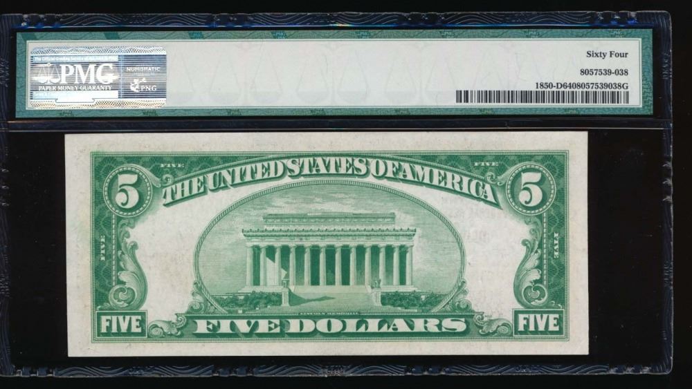 One 1929 $5 Cleveland Federal Reserve Bank Note PMG 64.