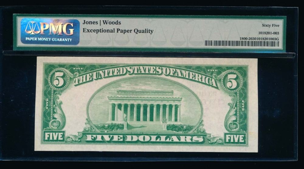 One 1929 $5 Cleveland National Bank Note PMG 65EPQ.