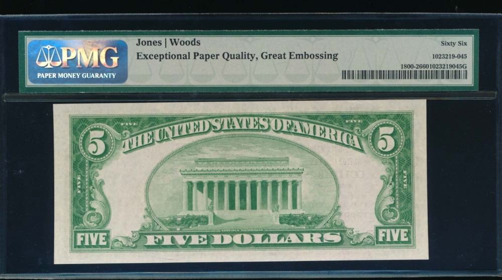 One 1929 $5 Columbus National Bank Note PMG 66EPQ.