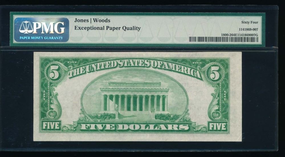 One 1929 $5 Dover National Bank Note PMG 64EPQ.