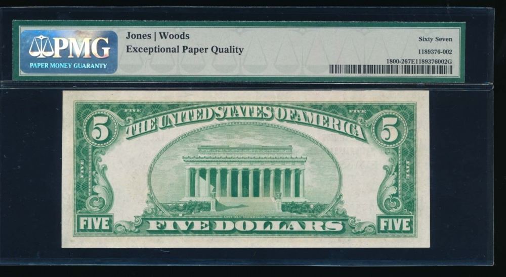 One 1929 $5 Evansville National Bank Note PMG 67EPQ.