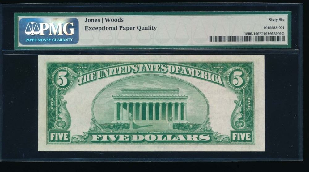 One 1929 $5 Galveston National Bank Note PMG 66EPQ.