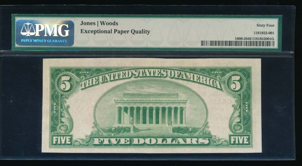 One 1929 $5 Green Lane National Bank Note PMG 64EPQ.