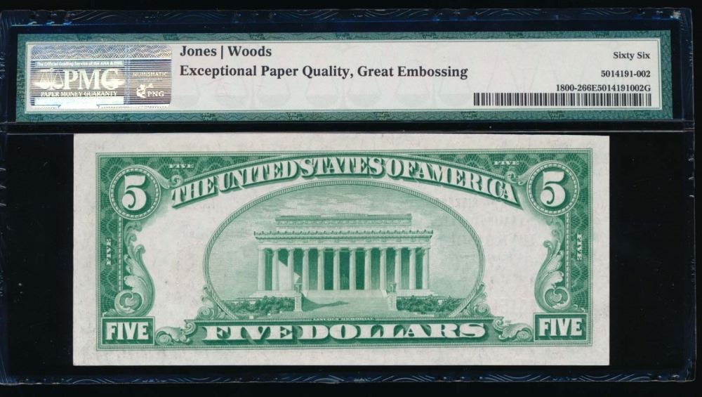 One 1929 $5 Harrisburg National Bank Note PMG 66EPQ.