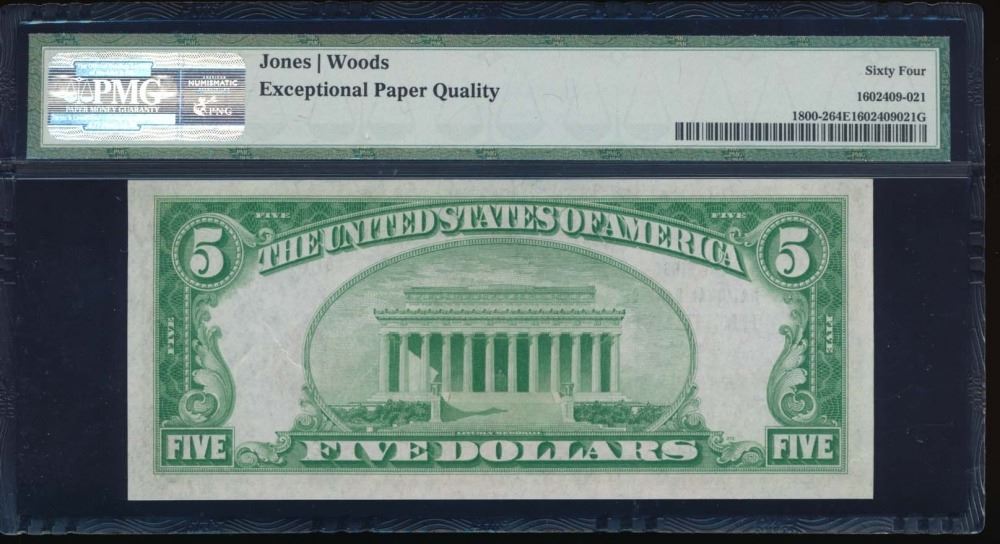 One 1929 $5 Highland National Note PMG 64EPQ.