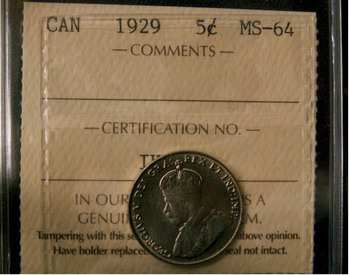 1929 5¢ ICCS MS64. A tough date.