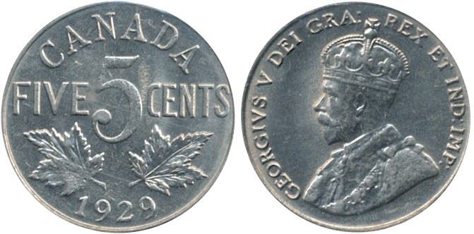 1929 5¢ ICCS MS65. Attractive fields with strong lustre.