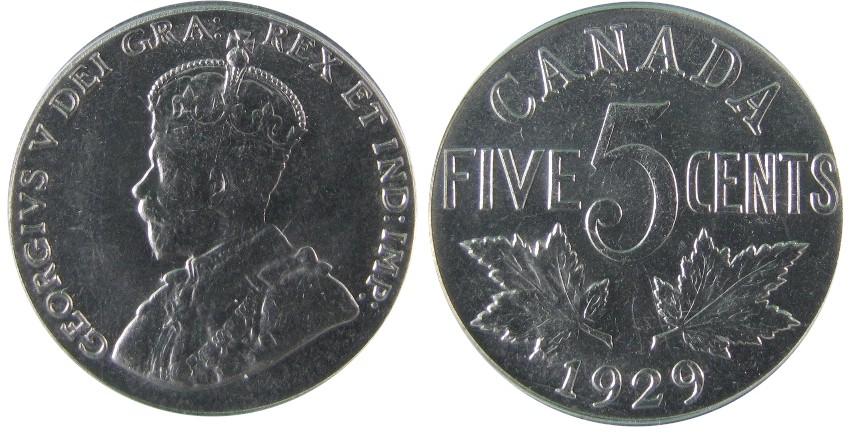 1929 5¢ ICCS/PCGS MS65, great fields with superb lustre. Rare this nice.