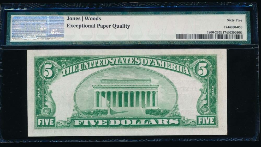One 1929 $5 Lexington National Bank Note PMG 65EPQ.