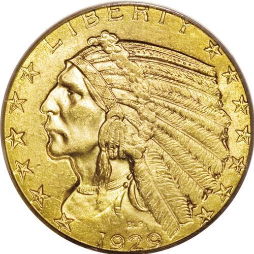 <B>1929 $5 MS64 PCGS.</B></I> As rare and well-known as this date is to collectors, it is only ranked as the ninth rarest date according to Akers. This is because the entire mintage was saved from circulation, and eventually stored in vaults. Most were later melted, although some examples were saved from the melting pot and entered numismatic circulation. This example is a sharply struck specimen with frosty yellow-gold luster and excellent visual appeal. It is also a remarkable piece for its quality and it barely misses finest known honors. Population: 96 in 64, 8 finer (11/06).<BR><I>From The Kutasi Collection.</B></I><BR><BR><b>Shipping:</b> Coin/Currency (<a target="_blank" href="http://www.heritageauctions.com/common/shipping.php">view shipping information</a>)