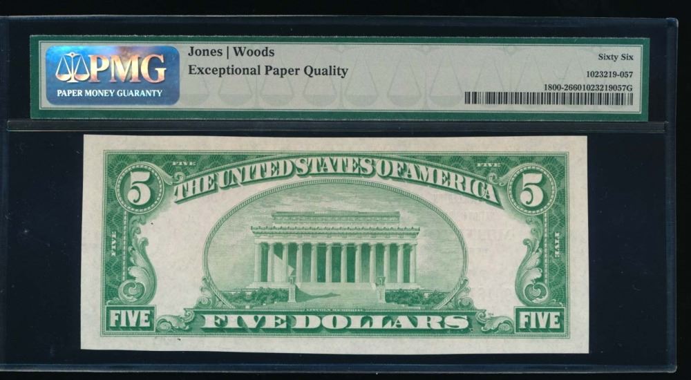 One 1929 $5 Millerton National Bank Note PMG 66EPQ.