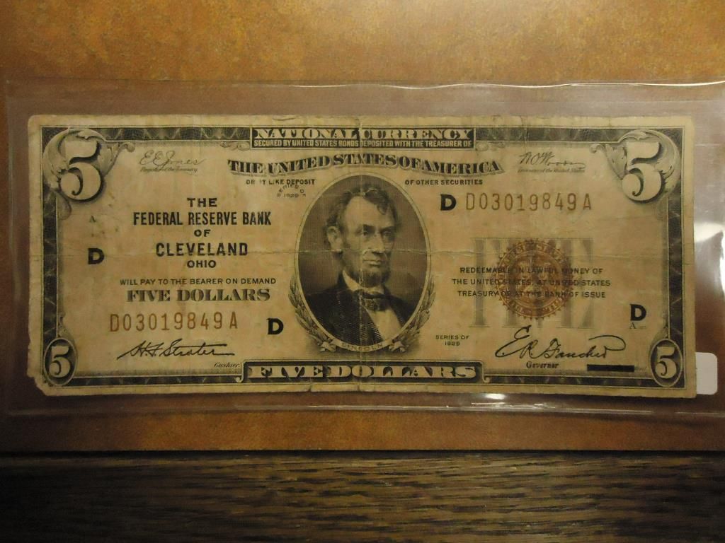 1929 $5 NATIONAL CURRENCY CLEVELAND BROWN SEAL