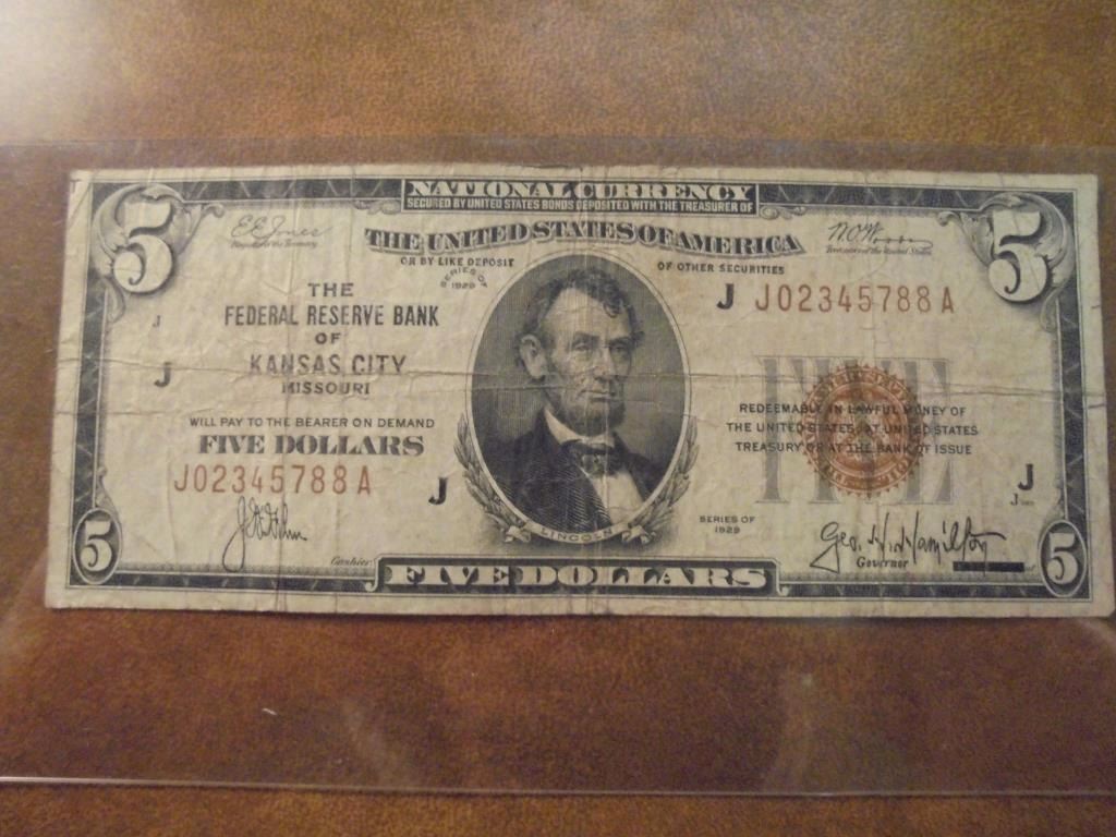 1929 $5 NATIONAL CURRENCY KANSAS CITY BROWN SEAL