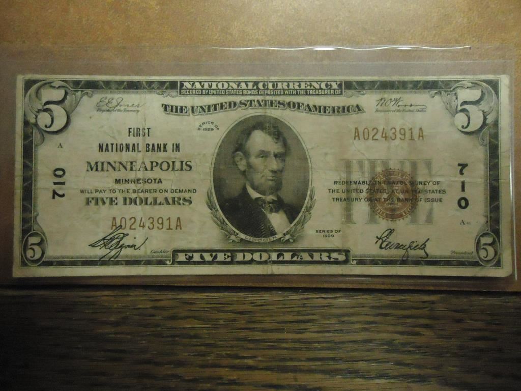 1929 $5 NATIONAL CURRENCY MINNEAPOLIS BROWN SEAL